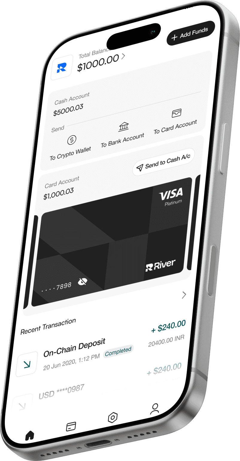 Unlike banks or custodial cards, River gives you full self-custody, multi-currency access, built-in yield, instant global transfers, and tranparent fees, all in one seamless experience.