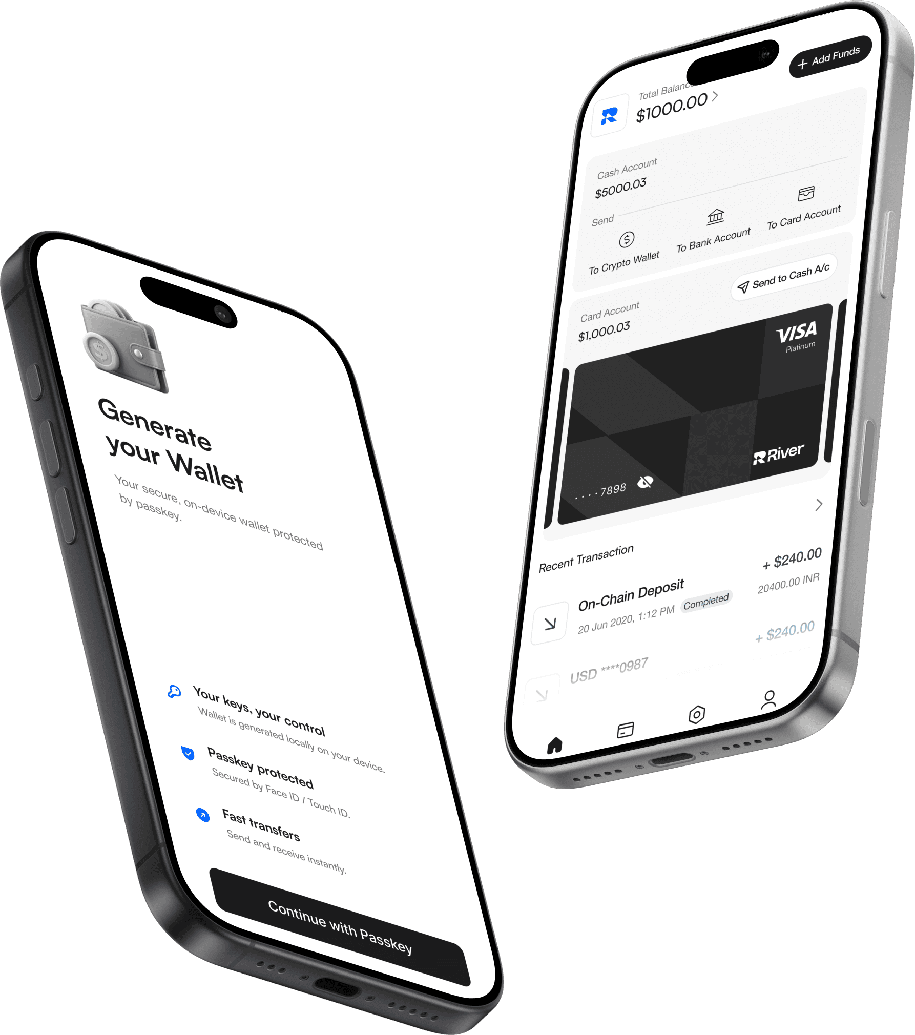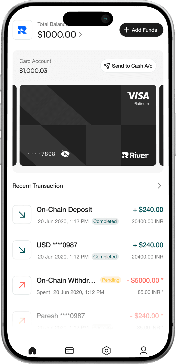 Unlike traditional cards, River is fully self-custodial — your assets stay in your control at all times. We never hold your keys or access your funds. You own it, we just make spending seamless and borderless.
